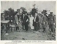 September 15: Prince Regent hearing reports at Ueno Park from Home Minister Viscount Shinpei Goto and Superintendent of political affairs of Tokyo Metropolitan Police Department (警視庁, Keishichō) Yuasa Kurahei − during his inspection tour over the devastated Capital.