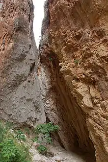 A deep narrow canyon is located on the other side of the street. It can be reached directly from the beach under the bridge, if no flowing water is present. The canyon has been formed from the abrasion of the rocks by flowing waters over thousands of years. The canyon ends after about 200 meters and has views to the steep walls. Entrance is free of charge.