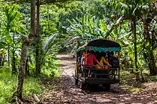 The transport to Karang Bolong Beach from the dock; the trip is completed over a dirt path through the forest.