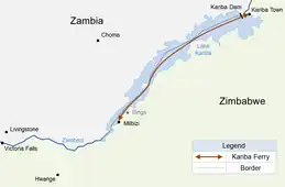 Kariba Ferries is a Zimbabwean ferry operator which operates on Lake Kariba between the fishing camp of Mlibizi (with access to Victoria Falls) in the south and Kariba town in the north. It offers an alternative to an overland journey of 1,250 kilometres (780 mi) taking 8 hours. The relaxing voyage by boat takes approximately 22 hours.[1]