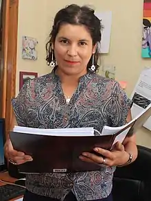Karina Riquelme Viveros (born 9 August 1981) is a Chilean human rights lawyer. Riquelme is affiliated with the Center for Research and Defense of the South (CIDSUR, Spanish: Centro De Investigación Y Defensa Del Sur), an organization committed to defending the rights of indigenous Chileans.[1] Groups such as Amnesty International have stated that Riquelme has been subject to persecution and intimidation campaigns for her role defending indigenous activists.[2][3]