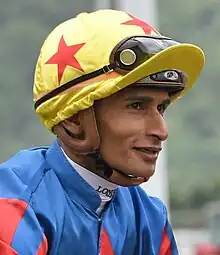 Karis Teetan (born 3 June 1990 in Mauritius)[1] is a horse racing jockey in Hong Kong. He was a South African Champion Apprentice in 2008. He start riding in Hong Kong at August 2013.[2] He also has won with more than 400 winners in Hong Kong and won the Hong Kong International Jockeys' Championship in 2019.[3]