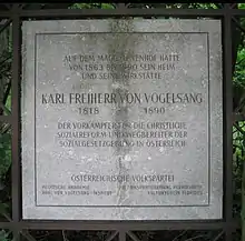 Karl Freiherr von Vogelsang (3 September 1818 – 8 November 1890), a journalist, politician and Catholic social reformer, was one of the mentors of the Christian Social movement in Austria-Hungary.[1]