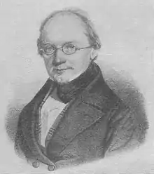 He studied medicine at the Universities of Tübingen and Heidelberg, obtaining his medical degree in 1818. Following graduation, he attended to hospitals in Vienna and Berlin, and in 1820 was assigned as a regimental physician in Rastatt. In 1822 he was associated with an artillery brigade at Karlsruhe, and during the following year, he visited hospitals in Paris and London.[1] From 1824 to 1862 he was a professor of clinical medicine at the University of Freiburg.[2] During his career, he also served as a privy councilor to the Grand Duchy of Baden.[3]