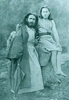 ![]() Diefenbach around 1885 with his son Helios (born 1880), taken by German photographer Georg Pettendorfer | |