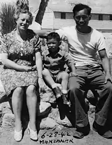 In 1942, Karl, Elaine, and son Tom were unjustly incarcerated at Manzanar following the signing of Executive Order 9066. Karl registered for the draft and joined the army in November. He served in the United States Military Intelligence Service as a Japanese language specialist in China, Burma and India.[6] He served valiantly and was decorated several times.