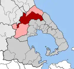 Karla (Greek: Κάρλα) is a former municipality in Magnesia, Thessaly, Greece. Since the 2011 local government reform it is part of the municipality Rigas Feraios, of which it is a municipal unit.[2] The municipal unit has an area of 223.591 km2.[3] The population of the municipal unit is 4,747 according to the census (2011). It is an agricultural area producing cereals, cotton and vegetables (28 kilometres away from Volos). The capital of the municipality was Stefanovikeio. The first name of Lake Karla was Voivis. This shows that it was dedicated to the sun and the goddess of Light Phoebe who was Leto's mother. Leto was the mother of Apollo who also had the name Phoebus which means the sun.