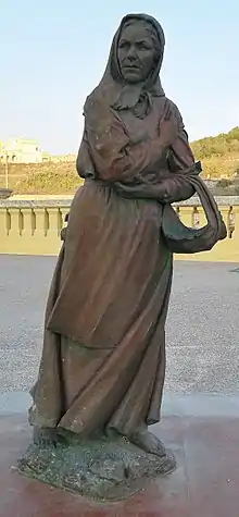 A statue of Karmni Grima outside Ta' Pinu Sanctuary in Gozo, Malta.