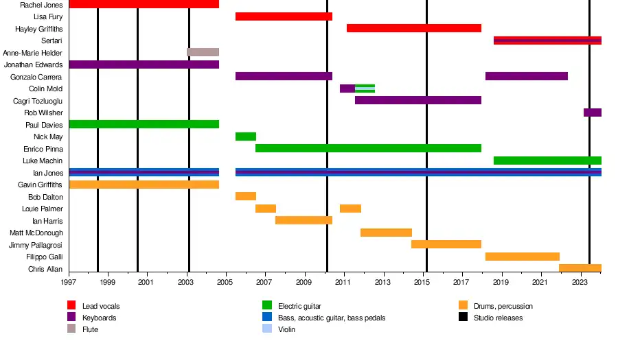 • Ian Jones - bass, acoustic guitars, keyboards, bass pedals (1997–present)