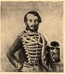 After his discharge from the Austrian army, he joined the ranks of the insurgent Hungarian armies. He commanded 12 regiments of hussars in Southern Hungary, where it is said that his bravery greatly inspired his soldiers. He fought in battle until the battle of Szolnok, where he was wounded and lost his voice.