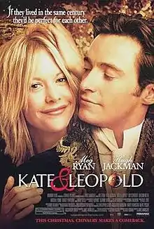 Kate & Leopold is a 2001 American romantic-comedy fantasy film that tells a story of a physicist by the name of Stuart (Liev Schreiber), who accidentally pulls his great‑great‑grandfather, Leopold (Hugh Jackman), through a time portal from 19th‑century New York to the present, where Leopold and Stuart's ex‑girlfriend, Kate (Meg Ryan), fall in love with each other.