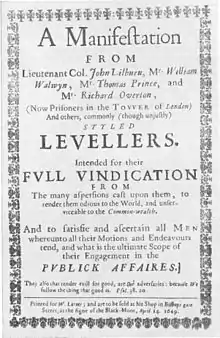 "The Levellers' Manifestation", a pamphlet issued by the four arrested leaders, arguing their case