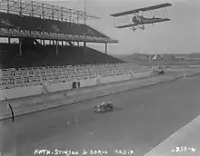 Aviatrix Katherine Stinson racing the 1916 Indy 500 champion Dario Resta