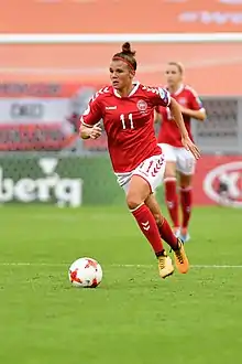 Katrine Vejsgaard Veje (born 19 June 1991) is a Danish professional footballer who plays as a left back for Everton in the English FA Women's Super League and the Danish national team. She has previously played for Arsenal in the FA WSL, LdB FC Malmö of Sweden's Damallsvenskan, Seattle Reign FC of the National Women's Soccer League as well as Odense Q and Brøndby IF of Denmark's Elitedivisionen.[2]