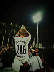 Katsumi wears number 206 to commemorate Presidency University's journey