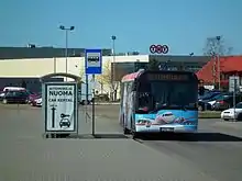 Kaunas city centre is reachable by direct bus route no 29, operated daily by Kauno Autobusai. The express service 29E operates on the same route, but offers limited bus stops on the line. The direct intercity services to capital Vilnius and Lithuanian coastal city Klaipeda are also available from and to Kaunas Airport as well as regional low frequency bus links to and from Anykščiai, Biržai, Ignalina, Kupiškis, Marijampolė, Molėtai, Obeliai, Rokiškis, Širvintos, Utena, Visaginas and Zarasai.
