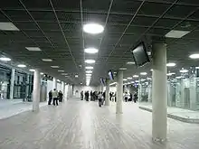 The ground level is designated arrival area and fully complies with Schengen regulations. There are all essential facilities for arriving passengers, including bureau de change and car rental offices. The upper two levels are for departing passengers only. All 12 check-in desks are located on the first floor, where the passengers flow is separated to Schengen and non-Schengen departure zones through the security areas located on the first and second floors. The airport is not equipped with air bridges which suits the preference of airport's biggest client Ryanair of boarding and disembarking with steps.