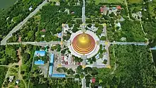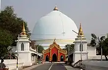 The Kaunghmudaw Pagoda (Burmese: ကောင်းမှုတော် ဘုရား [káʊɰ̃ m̥ṵ dɔ́ pʰəjá]; Yaza Mani Sula Kaunghmudaw (ရာဇမဏိစူဠာ ကောင်းမှုတော်); Pali: Rājamaṇicūḷā) is a large Buddhist pagoda on the northwestern outskirts of Sagaing in central Myanmar (Burma). Modeled after the Ruwanwelisaya pagoda of Sri Lanka,[1] the Kaunghmudaw is known for its egg-shaped design, which stands out among more traditional-style, pyramid-shaped Burmese pagodas. The stupa's formal name Yaza Mani Sula signifies the enshrinement of Buddhist relics inside its relic chamber. But it is commonly known by its popular name, Kaunghmudaw (lit. 'Royal Merit-Making'). It is an important pilgrimage and tourist destination in the Sagaing area.
