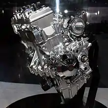 According to details Kawasaki made public about the H2's engine at Intermot, it was confirmed to be a 998 cc inline-four engine with a supercharger, producing 300 horsepower (220 kW) in the track-only H2R variant, still by far the highest rated engine ever for any factory production motorcycle[32][30][31] (50% more than its nearest competitor, the BMW S1000RR).[18]