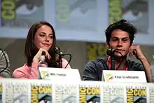 Kaya Scodelario and Dylan O'Brien at a panel for the Maze Runner film at San Diego Comic-Con International in July 2014