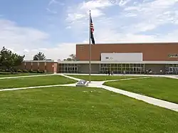 Kearns High School is a public high school located at 5525 S. Cougar Lane (4800 W.) Kearns, Utah, United States. It was opened in 1966 with its first graduating class graduating in 1967.[2] It serves 9th, 10th, 11th and 12th grade students. The official mascot is a Cougar and the school colors are green and gold. Starting with the 2014–2015 school year, the school now serves 9th grade.[3] At the 2021 graduation ceremony, Kearns High School officials withheld a student's diploma and subsequently charged her $5,000 because a guest popped confetti in celebration when the student's name was called.