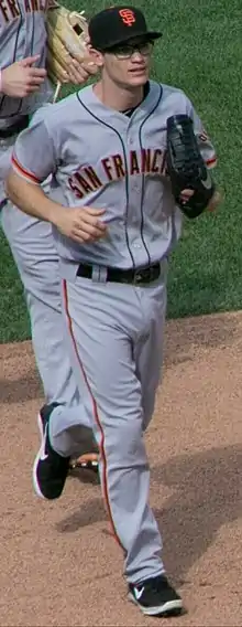 Kelby Aaron Tomlinson (born June 16, 1990) is an American former professional baseball utility player. He played college baseball at Texas Tech and played in Major League Baseball (MLB) for the San Francisco Giants, by whom he was drafted in 2011. He is 6 feet 3 inches (1.91 m) tall and weighs 180 pounds (82 kg). He bats and throws right-handed.