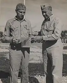 Rockey (right) decorated SSgt. William H. T. Swisher with Bronze Star Medal, Guam, 1944.
