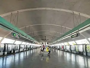 As with most of the above-ground stations built in the past along the East West Line, it was built without platform screen doors. After several successful test at Jurong East, Yishun and Pasir Ris and eventually, installation of the half-height screen doors to prevent commuters from falling onto the train tracks. Installation started in December 2010 and the platform screen doors started operations on 25 February 2011 with Kallang.[1]