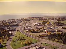 The Kenai Spur Highway is a 39-mile-long (63 km) highway on the Kenai Peninsula in the U.S. state of Alaska. The road begins at a junction with the Sterling Highway in Soldotna and provides access to the towns of Kenai and Nikiski, dead-ending at the entrance to the Captain Cook State Recreation Area. Visitors traveling between the Homer area and these areas can bypass Soldotna and access the Spur Highway via Kalifornsky Beach Road.[2] The highway is a four-lane undivided road inside of the cities of Soldotna and Kenai and a two-lane road elsewhere. The northern section of the road is also known as the North Kenai Road. In 2018, the Federal Highway Administration approved a plan to extend the road by eight miles to improve access to remote homes in the area.[3]