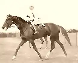 He was an attractive chestnut stallion, foaled in 1914, by Ksar’s half-brother, Kenilworth (FR), his dam Calluna was by Manton (NZ). Kenilworth won the Prix Greffulhe, Prix Rainbow and the marathon four mile (6,400 metres) race, Prix Gladiateur before being exported to Australia.[1] In Australia Kenilworth was the sire of 15 stakes winners that won 36 stakes races, including Wolaroi, which had 12 stakes wins.[2] Kennaquhair was a brother to Kenaluna, dam of Red Thespian (NJC Cameron Handicap). They were closely related to Blue Spec and Eric, won the AJC Metropolitan Handicap etc.[3]
