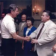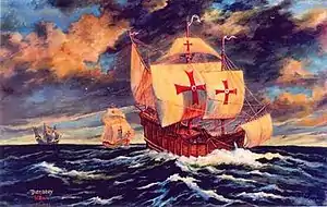Kenneth C. Madsen (October 31, 1927 – December 25, 2002) was an American artist. He was the son of a Danish immigrant father and a mother who influenced his interest in the arts. His most famous work is his 1991 painting, "Discovery," a representation of the voyage of Christopher Columbus. The painting graced the program cover of the National Independence Day Festival and Parade in Washington, D.C. In celebration of the Columbus Quincentennial, Utah’s governor Norman H. Bangerter joined the parade organization in presenting the original painting to U.S. President George H. W. Bush for his future Presidential library collection.[2]