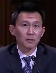 On April 4, 2019, his nomination was reported out of committee by a 12–10 vote.[17] On May 14, 2019, the Senate invoked cloture on his nomination by a 50–45 vote.[18] On May 15, 2019, his nomination was confirmed by a 52–45 vote.[19] He received his judicial commission on June 12, 2019.[20] Lee is the nation's first Article III judge who was born in the Republic of Korea and the second Korean American to serve on the Ninth Circuit.[21][22]
