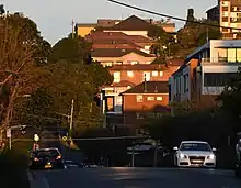 Barker Street: The terrain of Kensington is naturally rugged and hilly, but has been levelled over time.