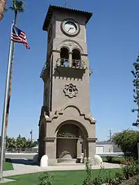 One of the most recognizable structures at the museum is the Beale Memorial Clock Tower, located on the lawn in front of it. The clock tower was originally constructed in 1904 in the center of the intersection of 17th St. and Chester Ave. It was destroyed in the 1952 earthquake and rebuilt at this site in 1964.[2]