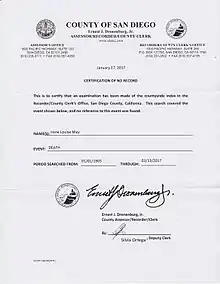 - ↑ Krueger, Anne (October 28, 1992). "Hearing Told of Suspect's 'Violence' Boasts". The San Diego Union-Tribune.