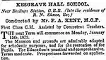 As owner of the Kesgrave Estate Robert became active in community life and he built and supported the Kesgrave District School from 1840 which was considered to be a very generous contribution at this time. He was also the local magistrate and between 1832 and 1836 was the Member of Parliament for East Suffolk. The couple had no children and when Robert died in 1855 and his wife Frances Ann in 1856, the estate was left to her favourite nephew, opera singer Henry Whitworth Jones 1817-1891 who sold the property to Colonel George Tomline of Orwell Park who was a very wealthy landowner and MP.[5] Tomline did not buy the Kesgrave Estate as a residence instead he wanted the land for agricultural use. He therefore let Kesgrave Hall to Francis Aldous Kent who was a schoolmaster. Kent established the Kesgrave Hall School which operated from about 1870 to 1900. An advertisement for the school which appeared in a newspaper of 1871 is shown.