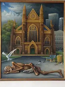 Kevin McKay (born 1966) is a self-taught Australian artist whose skills attracted a great deal of early attention. Pictured below are some of his rare early paintings. "Lazarus" and "Feiheit" are three dimensional paintings.