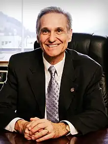 Kevin Gerald Meyer (born May 9, 1956 in Beatrice, Nebraska) is an American politician who served as the 14th lieutenant governor of Alaska from 2018 to 2022. He was a Republican member of the Alaska Senate from January 20, 2009 to December 3, 2018, representing District M.[1] He was president of the Alaska Senate, leading a caucus of 14 Republicans and 1 Democrat from 2015 to 2017. Meyer served in the Alaska Legislature continuously from 2003 to 2018, in both the Alaska House of Representatives and Senate, previously representing the district when it was District O. He works as an investment recovery coordinator for ConocoPhillips.
