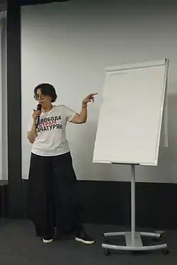 The girls were supported by many public figures: American singer Serj Tankian,[48][49] writer Narine Abgaryan, journalists Ksenia Sobchak and Yury Dud, musician Basta, singer Anna Sedokova, as well as by NGOs Кризисный центр для женщин and Насилию.нет and others.[50][51]