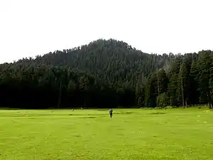 Khajiar can be reached from Dalhousie, the nearest major town. It has a rare combination of three ecosystems: lake, pasture, and forest. [3]
