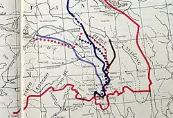 In 1837, a minor chieftain Gompo Namgyal, of Nyarong in eastern Kham, began expanding his control regionally and launched offensives against the Hor States, Litang, Degé, the Chakla and Batang, becoming the paramount power in the region.[1][3] China sent troops in against Namgyal which were defeated in 1849,[4] and additional troops were not dispatched. Chinese military posts were present along the trading route, but "did not have any authority over the native chiefs".[3] By 1862, Namgyal blocked trade routes from China to Central Tibet, and sent troops into China.[1]