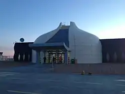 The terminal building (designed to mimick a Mongolian ger) is able to cater for up to 240 passengers per hour.[10]