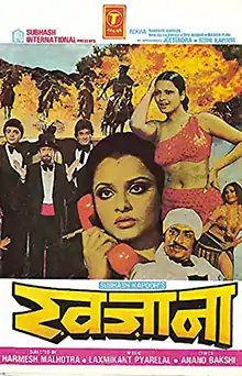 Khazana (transl.Treasure) is a 1987 Indian Hindi-language action-adventure film, produced by Subhash Kapoor under the Subhash International banner and directed by Harmesh Malhotra. It stars Randhir Kapoor and Rekha, while Jeetendra, Rishi Kapoor have special appearances and music was composed by Laxmikant–Pyarelal.[1][2] The movie is loosely based on the 1984 Kannada movie Gandu Bherunda which in turn was inspired by the 1969 American film Mackenna's Gold.[3]