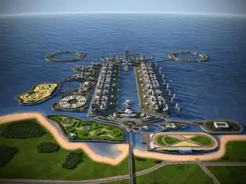 The Khazar Islands (Azerbaijani: Xəzər adaları), also known as Caspian Islands,[1] is a stalled development of artificial islands 25 km (16 mi) south of Baku, Azerbaijan consisting of 41 islands extending 3,000 hectares (30 km2; 7,400 acres; 12 sq mi) into the Caspian Sea.[2][3][4][5]
