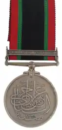 The medal was awarded with sixteen clasps[5] inscribed in both English and Arabic, the largest number issued with one medal being five. Bronze medals were awarded without a clasp.[1]