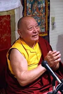 Khenpo Karma Tharchin Rinpoche (3 April 1924[1] – 6 October 2019), widely known by his abbreviated name Khenpo Karthar Rinpoche, was a senior lama of the Karma Kagyu school of Tibetan Buddhism. Before his death he served as abbot of Karma Triyana Dharmachakra (KTD) Monastery in Woodstock, New York.