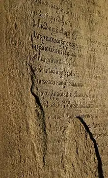 Sanskrit inscriptions, from the 5th to the 14th century, are found all over Cambodia, and they are proof of the flourishing state of Sanskrit learning.[5] These inscriptions exhibit the knowledge of different metres and the most developed poetic rules and conventions of rhetoric and prosody.[6] Khmer inscriptions are more philosophical than the mangala of Indian inscriptions. Their language and grammar is also more correct than most Indian inscriptions.