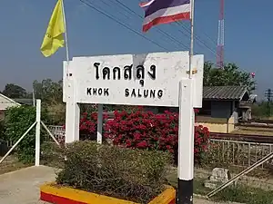 Khok Salung railway station is a railway station located in Khok Salung Subdistrict, Phatthana Nikhom District, Lopburi Province. It is a class 3 railway station located 176.55 km (109.7 mi) from Bangkok railway station.[1][2] From November until January of the following year, the Pa Sak Jolasid Dam excursion train runs across the Pa Sak Jolasid Reservoir viaduct and terminates at this station, using it as a switchback for the locomotive for the return trip to Bangkok.