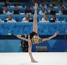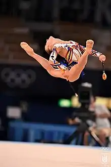 Khrystyna Oleksandrivna Pohranychna (Ukrainian: Христина Олександрівна Погранична; born 13 May 2003)[2] is a Ukrainian individual rhythmic gymnast. She is the 2018 Youth Olympic Games all-around silver medalist, a 2020 Olympic Games all-around finalist, and a four-time medalist at the 2018 European Junior Championships. She is the 2017 and 2018 junior national all-around champion and the 2019 and 2021 national all-around silver medalist.