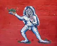 The antithesis of the Khyah is the Kawanchā, a skeleton.[5][6] Khyahs and Kawanchas appear as supporting characters in sacred dance dramas of the Newars.[7][8] Images of Khyahs and Kawanchas are also placed at temples as guardians of the shrine.